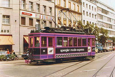 Während dem Umbau der Spengler Filiale in Basel verkehrten zwei Werbetrams auf der Strecke Aeschenplatz bis Fichtenwald als Kundenzubringer zum Modehaus Spengler.